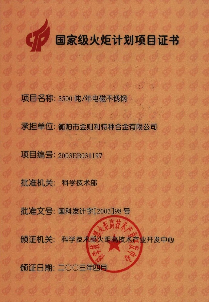 衡陽市金則利特種合金股份有限公司成立于一九九九年十二月,注冊資本人民幣兩千兩百萬元。注冊地址:衡陽市雁峰區(qū)白沙洲工業(yè)園長塘路2號。公司主營耐蝕軟磁合金,為湖南省高新技術企業(yè)。公司自成立以來,即致力于耐蝕軟磁合金的研發(fā)。 研制出的JL-31(00Cr13si2Pb)、JL-31B(00Cr13si2)、JL-31BS(00Cr13Si2S)、JL-37B(0Cr17Si2)、JL-37(0Cr17···